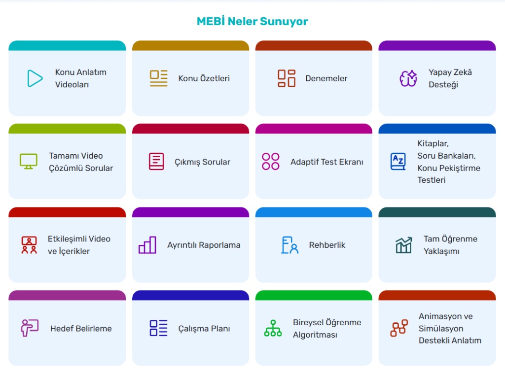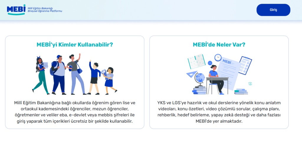 MEBİ, ortaokul öğrencilerimizin de kullanımına açıldı. Bu kapsamda MEBİ, eğitimde fırsat eşitliğini güçlendirmek için Temel Eğitim Genel Müdürlüğü tarafından yürütülen çalışmalar sonucunda Türkiye Yüzyılı Maarif Modeli Öğretim Programları ve Liselere Geçiş Sistemi (LGS) çerçevesinde zenginleştirildi. Bu doğrultuda, yeni müfredatın uygulandığı 5 ve 6'ncı sınıf düzeylerinde MEBİ'de Din Kültürü ve Ahlak Bilgisi, Türkçe, Matematik, Fen Bilimleri, Sosyal Bilgiler ve İngilizce derslerine yönelik olarak, "Hazır bulunuşluk Soruları", "Konu Anlatım Videoları", "Beceri Temelli Etkileşimler", "Etkinliklerle Öğren", "Bağlam Temelli Sorular" ve "Oynayarak Öğren" içerikleri hazırlandı. Ortaokul son sınıf düzeyinde ise platformda dinn kültürü ve ahlak bilgisi, Türkçe, matematik, fen bilimleri, İngilizce ile T.C. İnkılap tarihi ve Atatürkçülük derslerine yönelik olarak "Hazırbulunuşluk/Hazırlık Testleri", "Çıkmış Sorular", "Değerlendirme Testleri", "Soru Çözüm Videoları", "Konu Anlatım Videoları", "Konu Özetleri, Deneme ve Tarama Sınavları" bölümleri yer aldı.